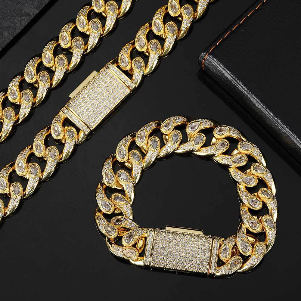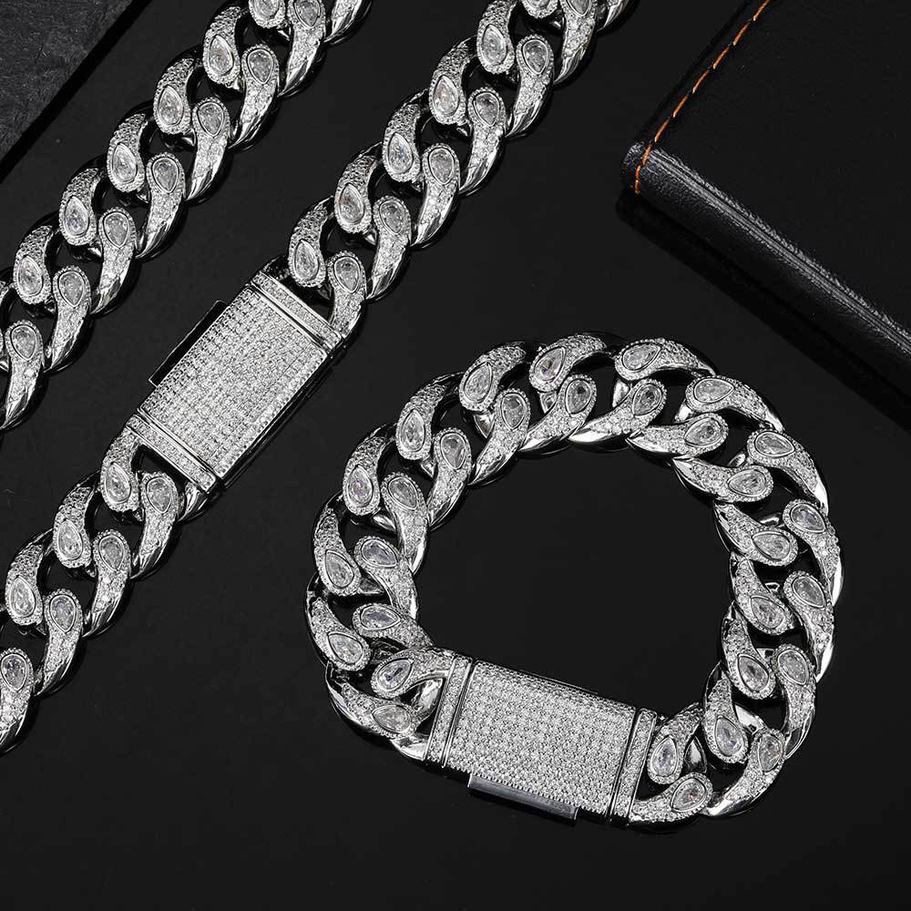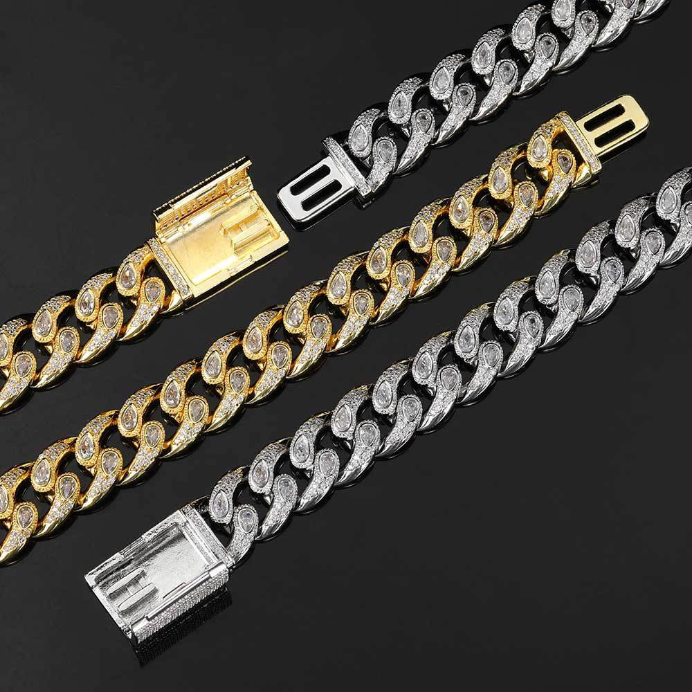 16mm Pear Cut Hip Hop Cuban Link Chain & Bracelet