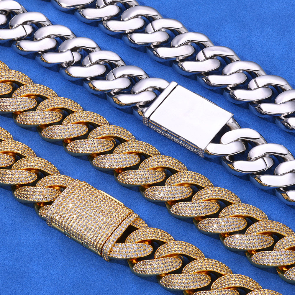 - Quad-Row CZ Setting: Encrusted with four parallel rows of brilliant round-cut cubic zirconia for a thicker, more intense field of sparkle than standard chains.