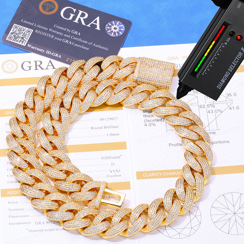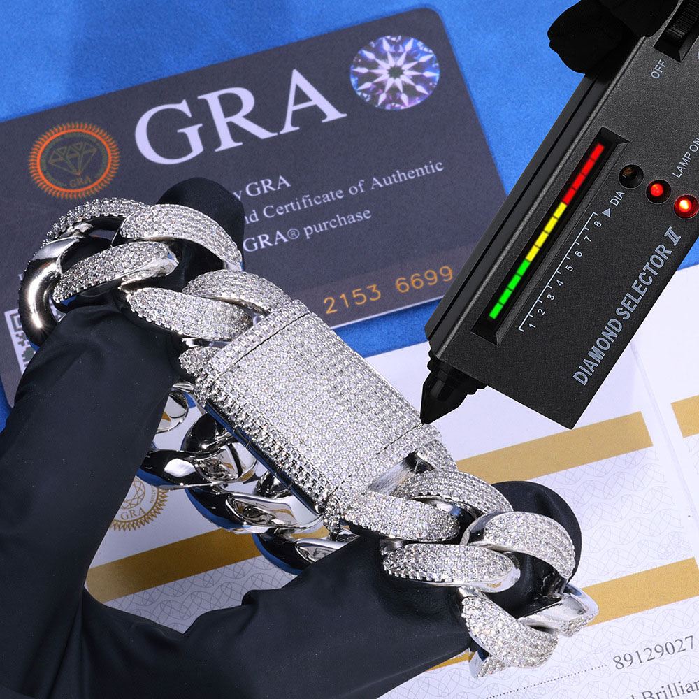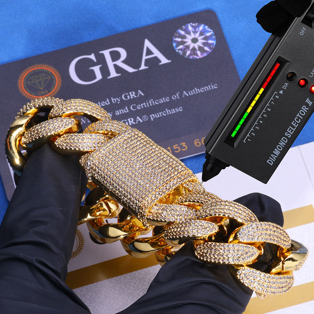 Redefine high-end streetwear with the bold, high-intensity fire of our 20mm Bubble-Shape Moissanite Cuban Link Chain Necklace & Bracelet. This heavy-hitting designer combo is crafted with a premium Sterling Silver core and saturated with a dense micro-pave of genuine VVS Moissanite. The oversized 20mm links feature a unique, rounded “bubble” silhouette that provides a softer, more voluminous 3D presence than traditional flat links, ensuring maximum light refraction from every angle. Available in rich 18K Gold or high-polish Rhodium plating, this set includes both the statement necklace and matching bracelet, each secured by a massive, fully iced-out industrial box clasp.