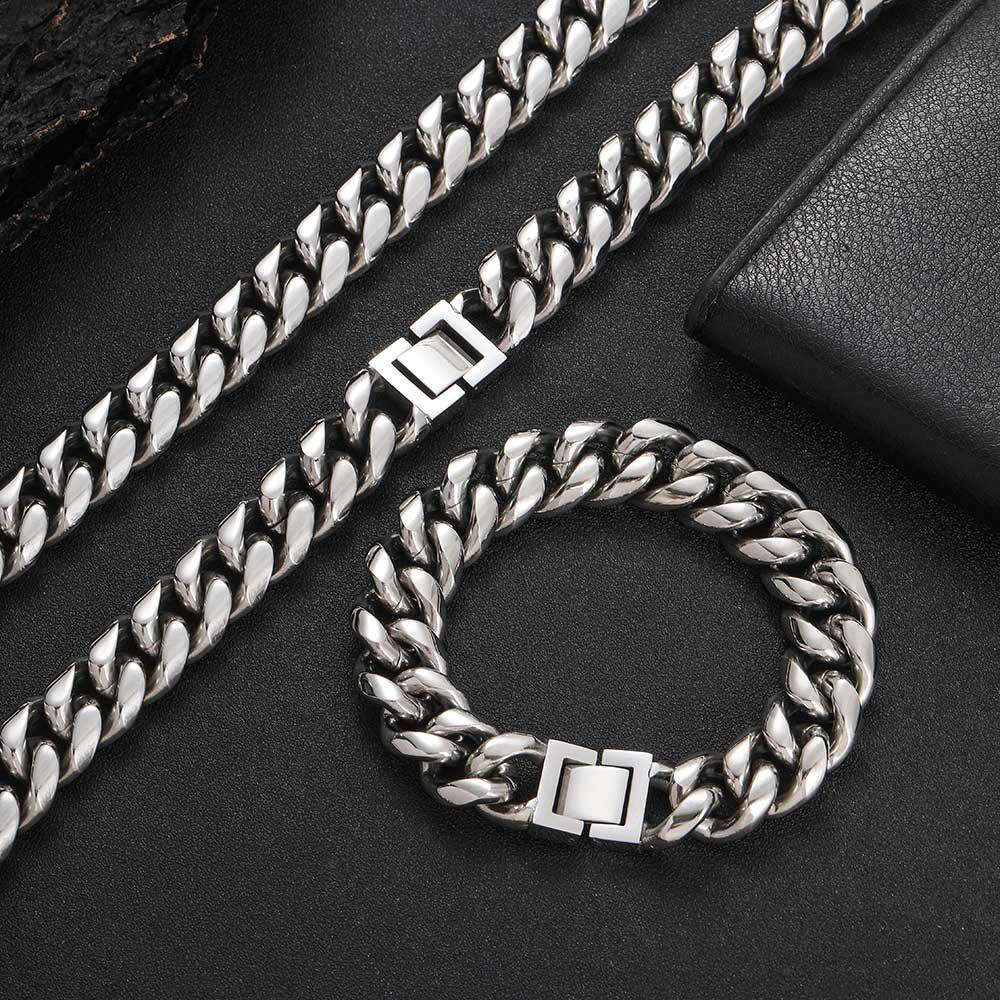 Industrial Strength Meets Luxury Design: Constructed from high-grade stainless steel, this set is built to withstand daily wear without rusting or fading. The double-lock box clasp provides professional-level security, ensuring that even the heaviest 18mm chains stay safely in place. Whether you’re rocking the full set or layering different widths, this collection delivers the perfect balance of urban style and uncompromising durability.