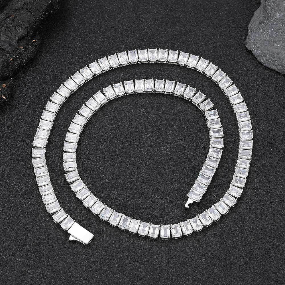 - The “Baguette” Edge: The 6mm width and rectangular step-cut stones provide a modern, “iced out” aesthetic that stands out from common tennis chains.