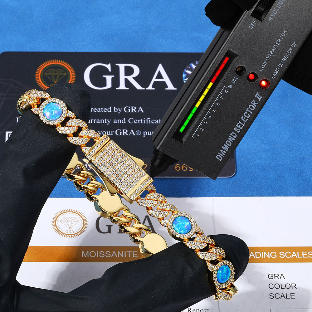 Blue Gemstone Moissanite Cuban Link Chain & Bracelet