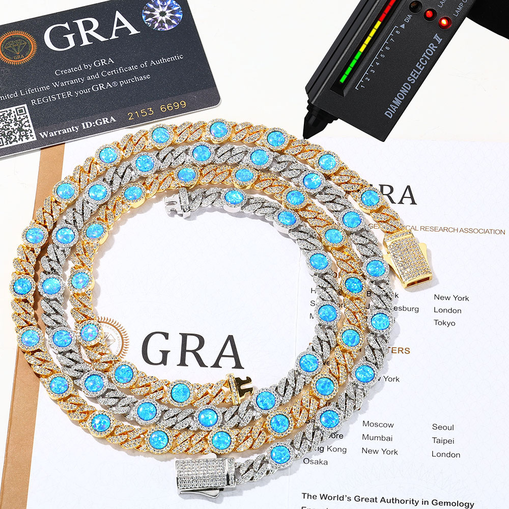 - Striking Blue Accents: Features vibrant, circular blue gemstones bezel-set within the Cuban links for a unique, high-end designer look.