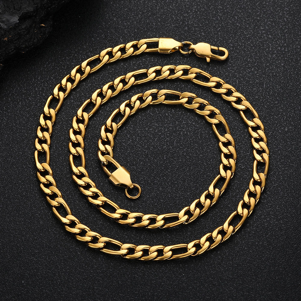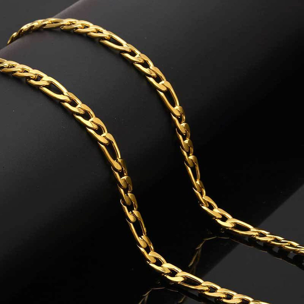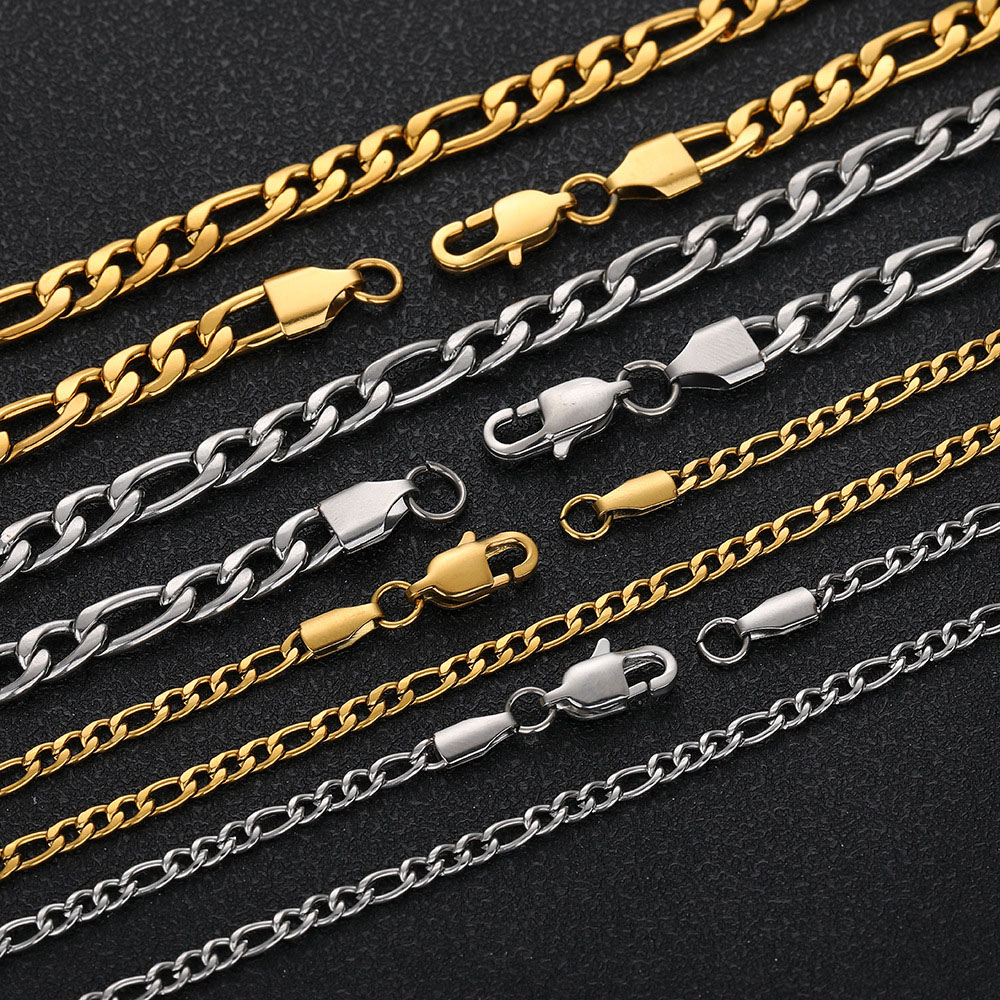 Classic Stainless Steel Figaro Link Chain & Bracelet is recognized globally for its distinct rhythmic link pattern. The Figaro design offers a more intricate texture than standard curb chains, making it a favorite for both standalone wear and layering with pendants.