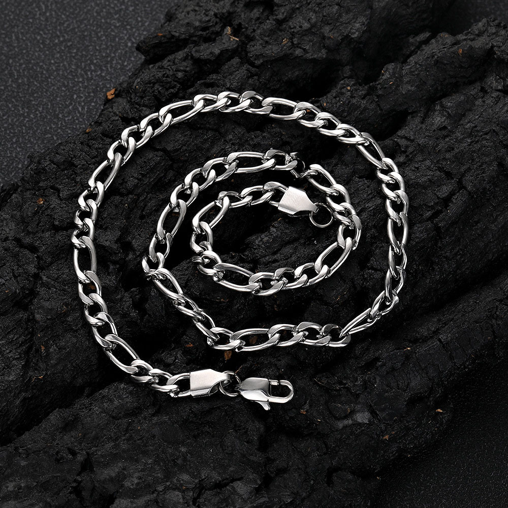 Classic Stainless Steel Figaro Link Chain & Bracelet
