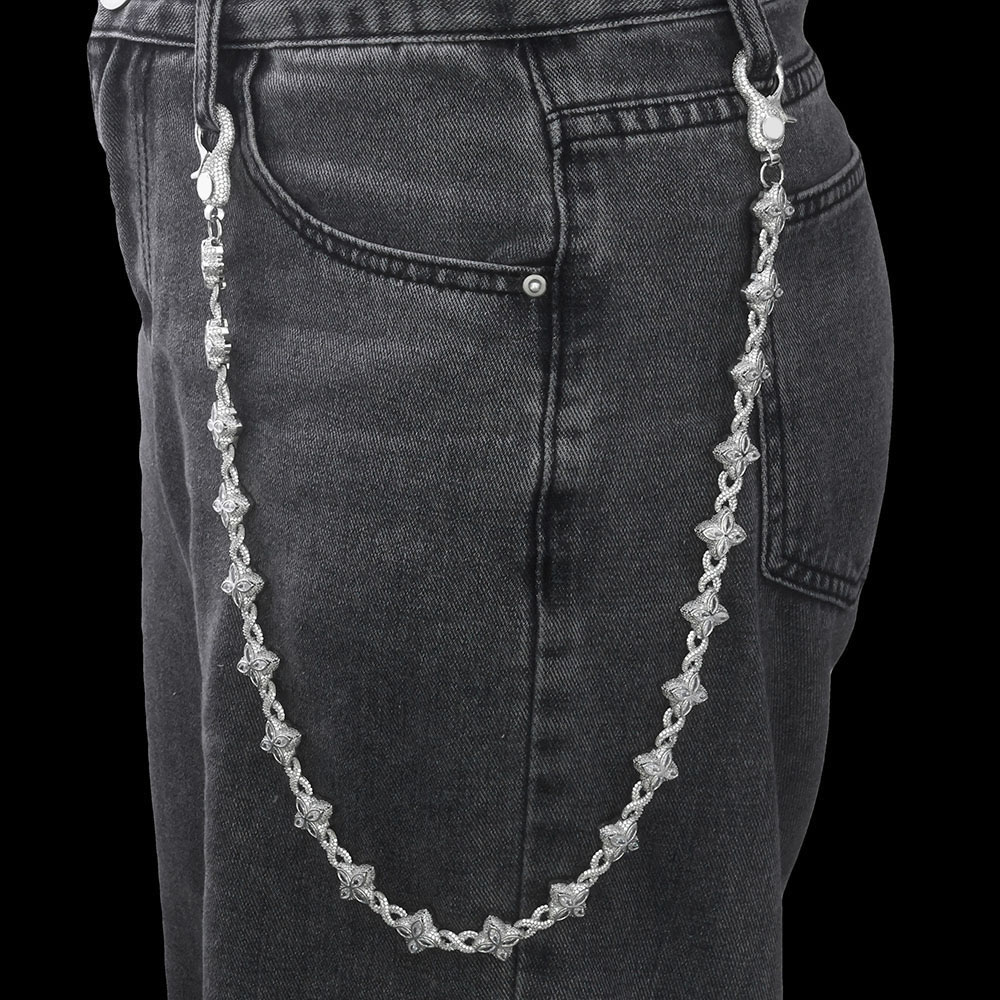 Elevate your streetwear with this stunning iced-out trouser chain featuring repeating infinity symbols and lucky four-leaf clover charms. Crafted with a premium copper base and encrusted with brilliant cubic zirconia, it adds a luxurious, high-shine edge to any outfit.