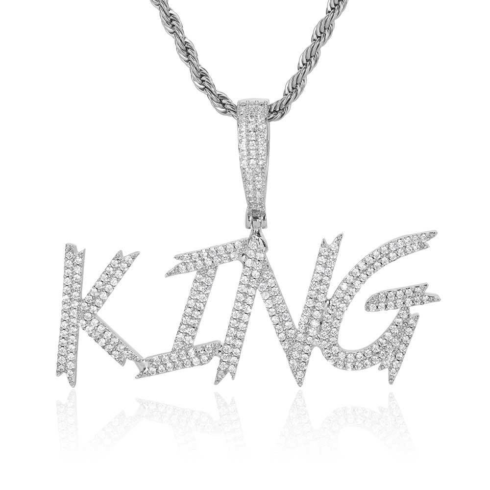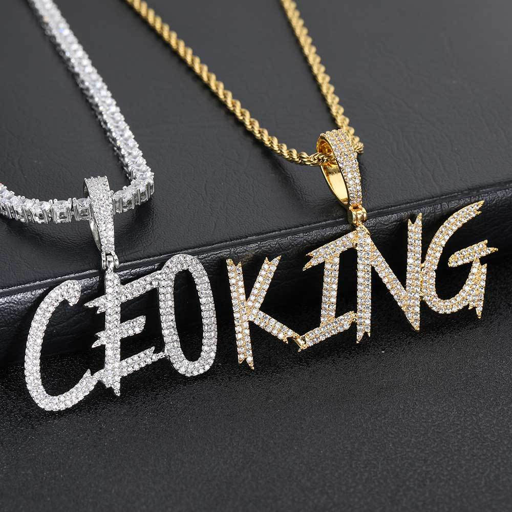 Channel a bold, vintage aesthetic with this Custom Gothic Font Nameplate. The sharp, intricate lines of the lettering are fully flooded with brilliant cubic zirconia, creating a striking contrast between dark-age style and modern hip-hop brilliance.