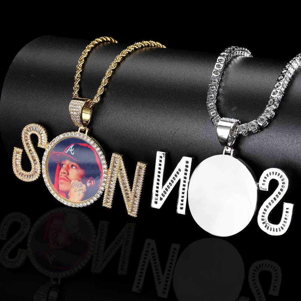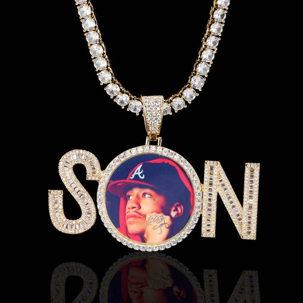 Custom Iced Out SON Letter Photo Pendant