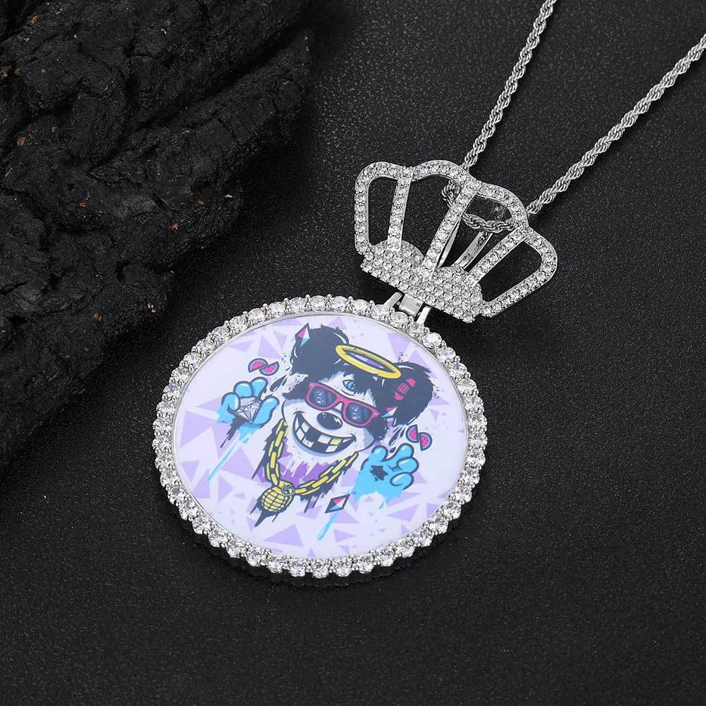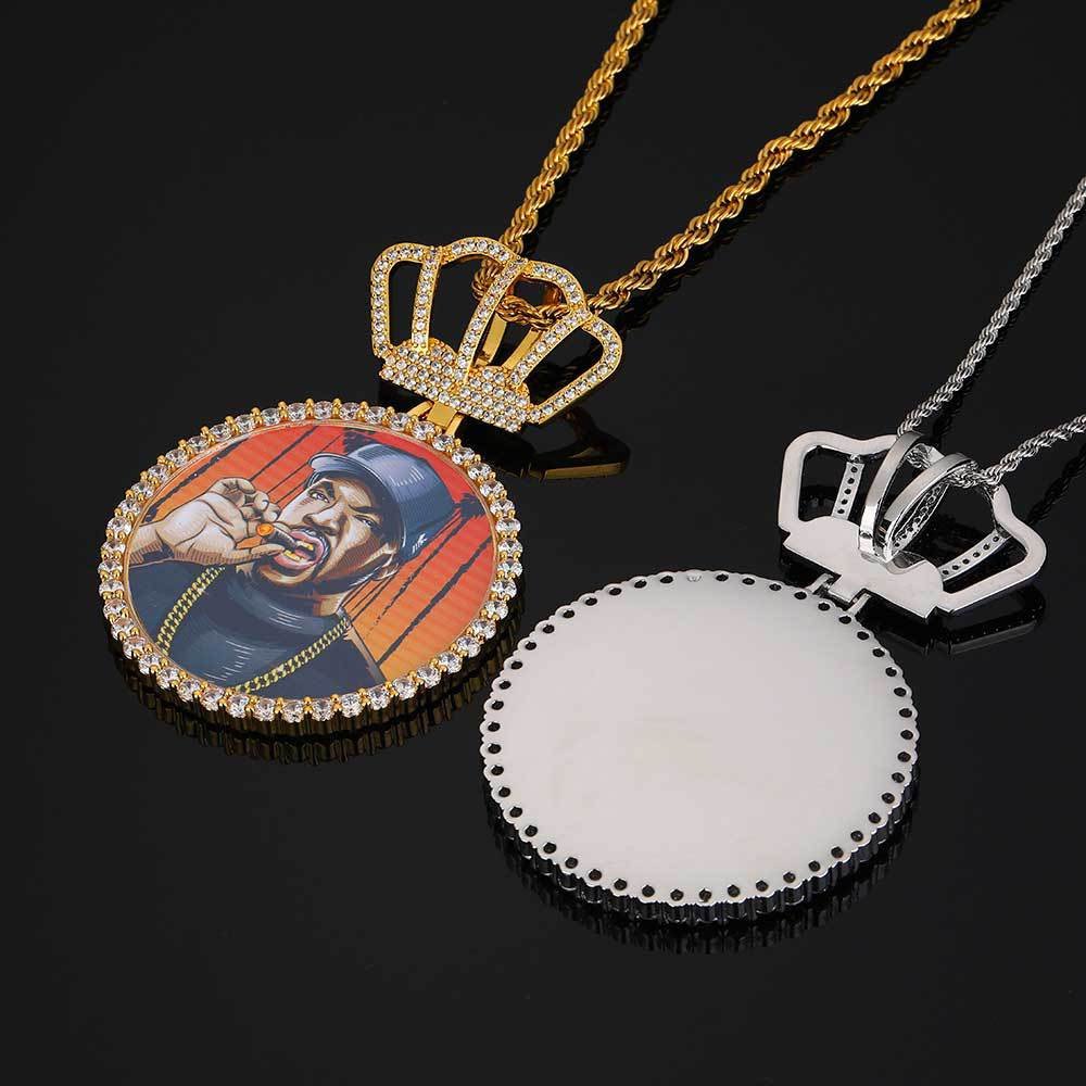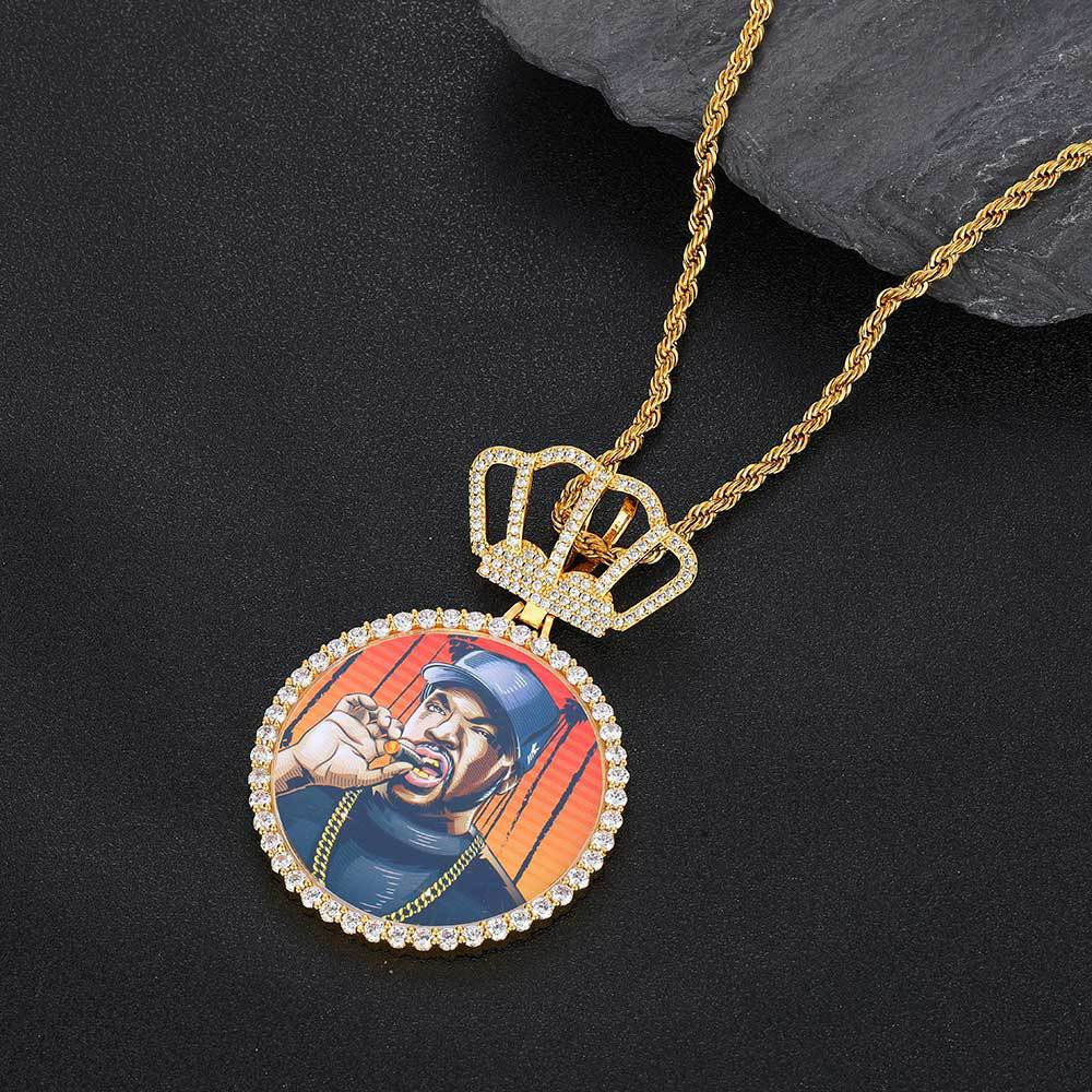 Luxury Custom Picture Pendant with Crown Accent and Rope Chain