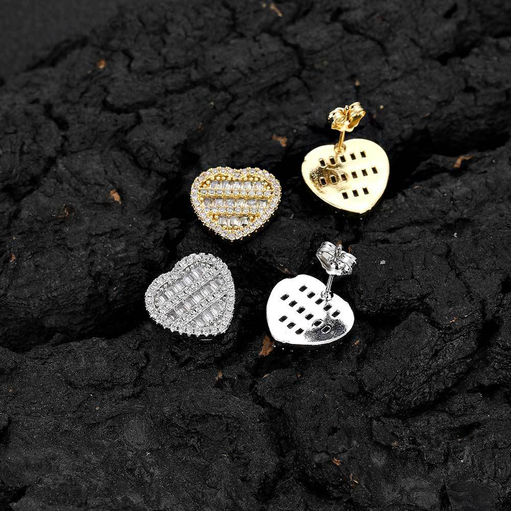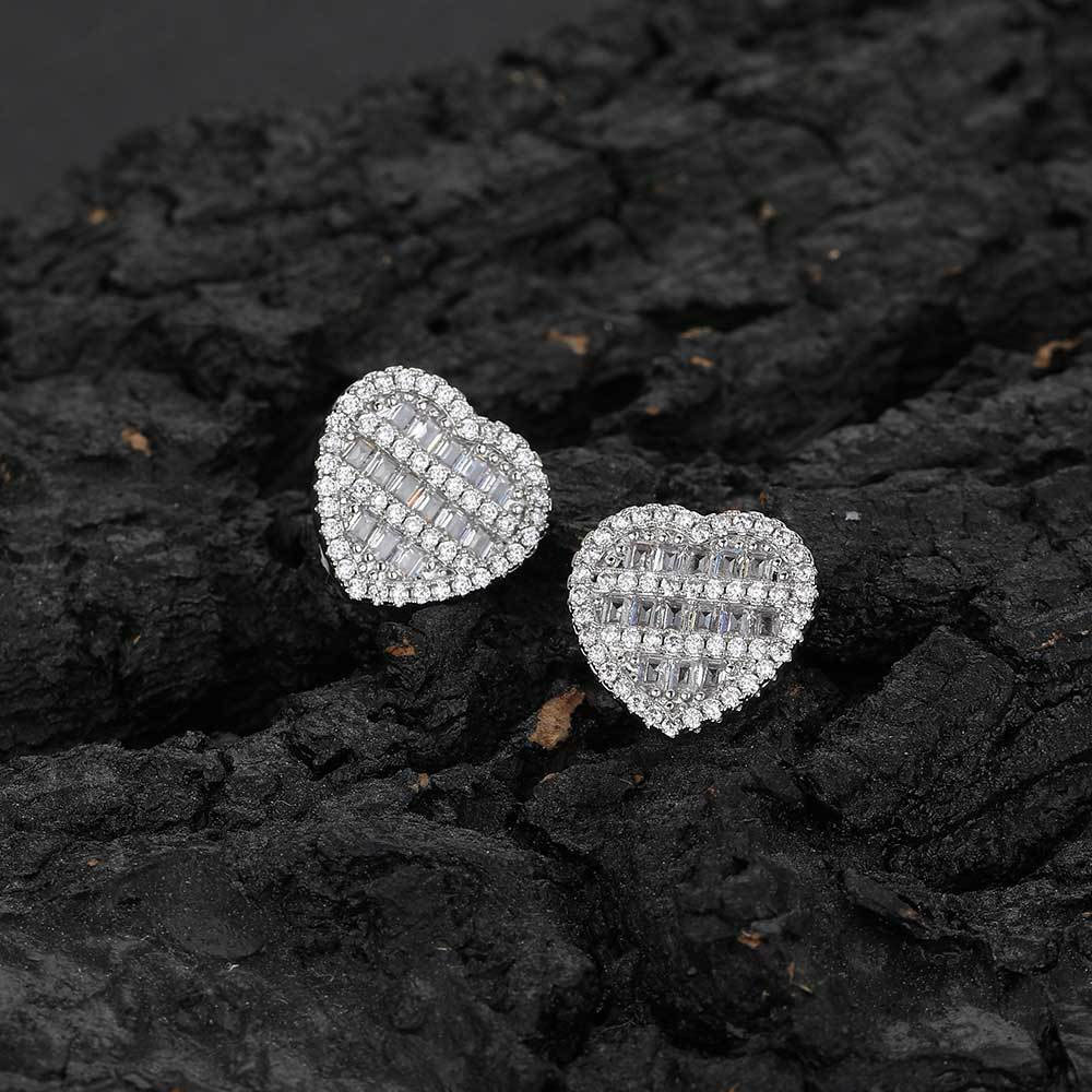 Redefine your look with these Iced Out Baguette Heart Stud Earrings. Merging the timeless heart silhouette with the modern fire of baguette-cut stones, these studs are designed to deliver a powerful, multi-dimensional sparkle. Whether you are dressing up for a night out or adding a touch of luxury to your daily streetwear, these earrings provide a high-end “iced out” aesthetic that commands attention.