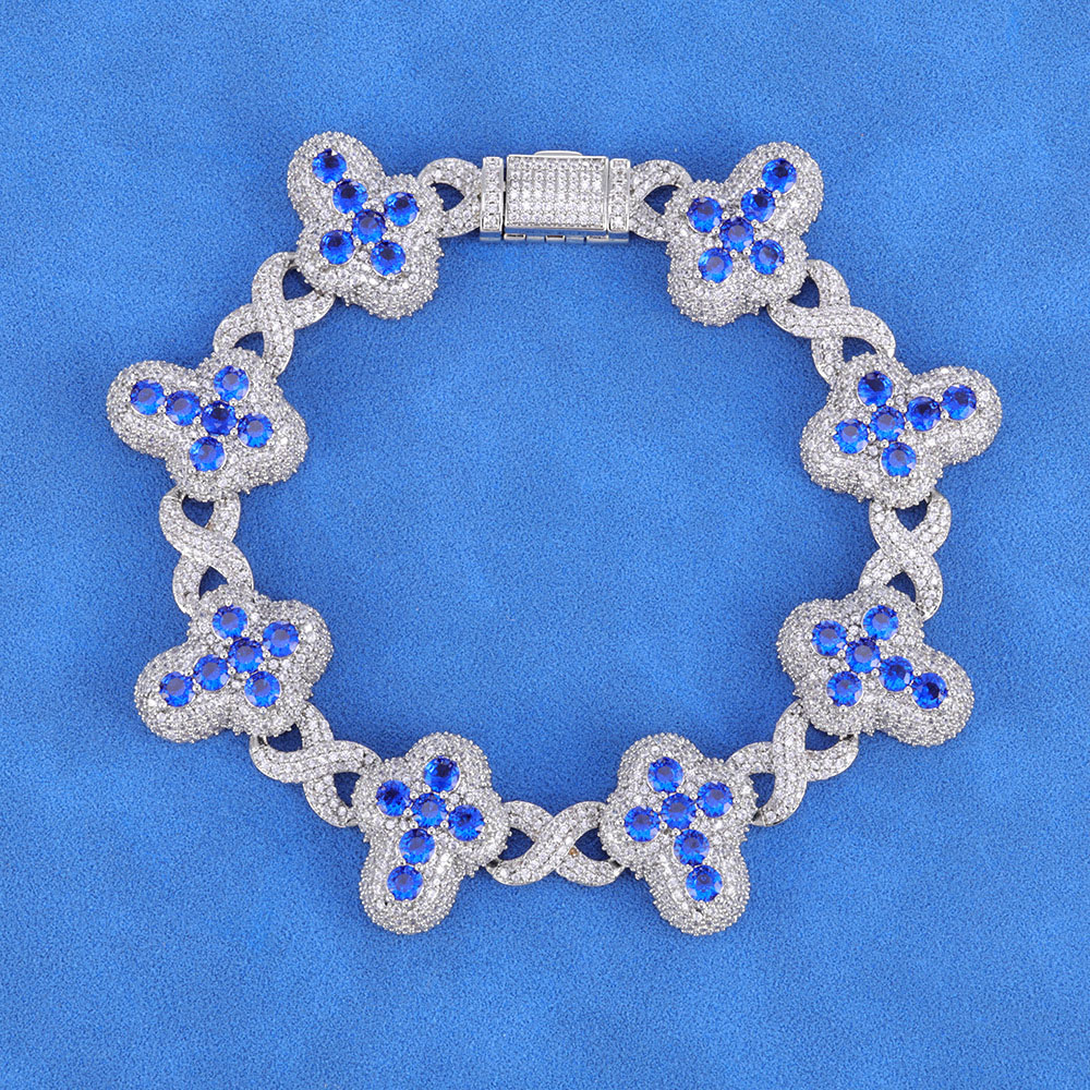 Iced Out Blue Cross & Pave Infinity Link Chain & Bracelet – Blue & White CZ Bling