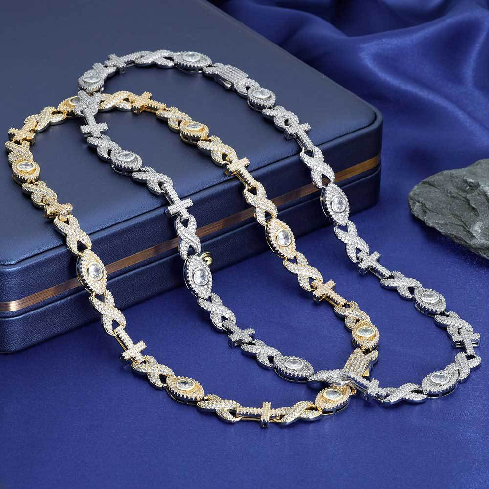 Iced Out Cross Infinity and Evil Eye Link Chain