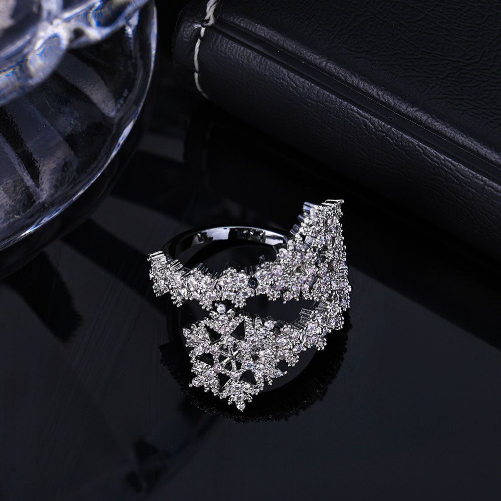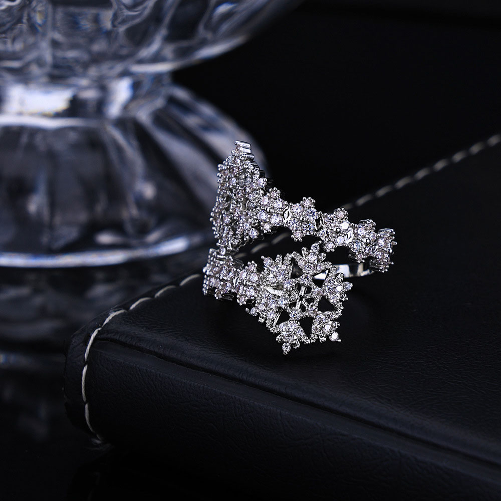 Iced Out CZ Snowflake Bypass Ring – Sparkling Winter Wrap Band