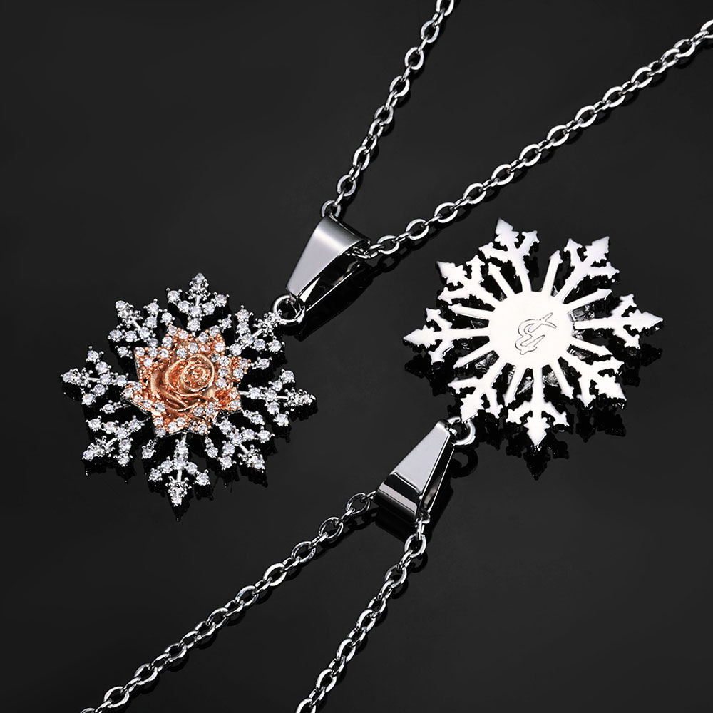 - Sophisticated Two-Tone Finish: Features a striking contrast between the shimmering silver-toned snowflake and a lush rose gold-plated flower, enhancing the visual depth and making the central rose a vibrant focal point.