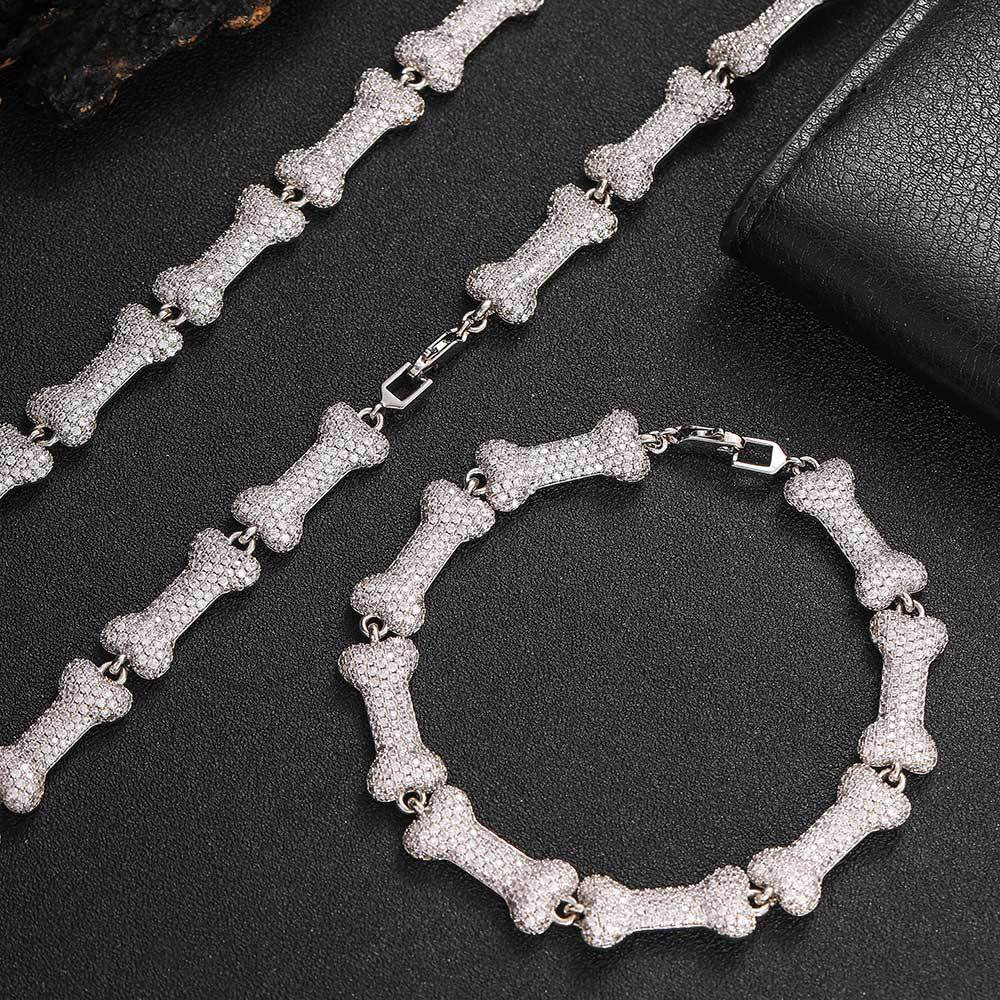 Iced Out Hip Hop Jewelry Bone Link Chain & Bracelet