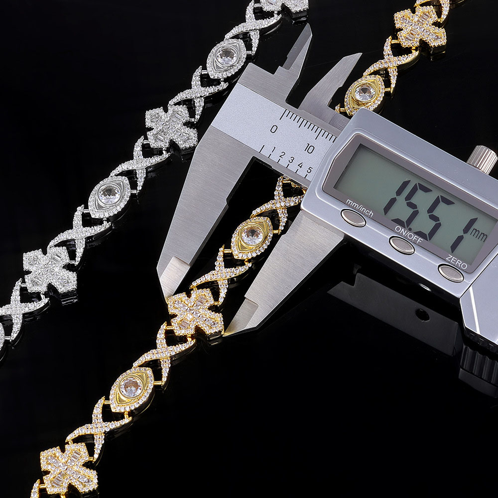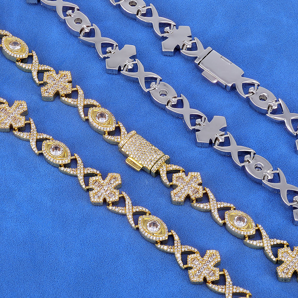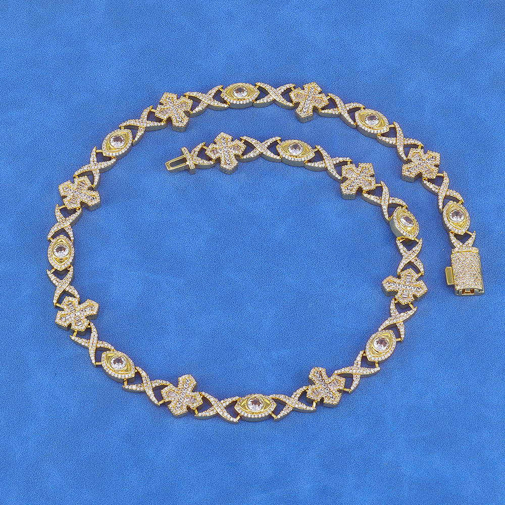 Triple Symbol Hip Hop Chain – Iced Out Infinity, Cross & Evil Eye Link Chain & Bracelet