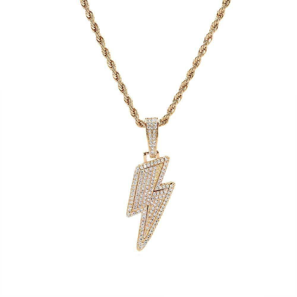 Iced Out Lightning Bolt Pendant – Hiphop CZ Necklace with Rope Chain