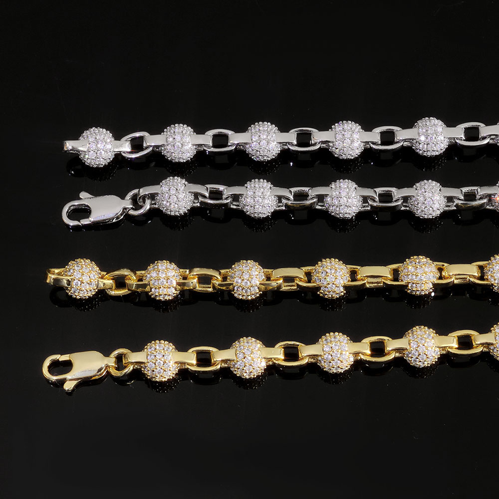 Experience a unique sparkle with our Ball & Oval Link chain. Each precision-set sphere is flooded with AAA+ Cubic Zirconia for a multi-dimensional glow. Available separately in necklace or bracelet lengths, these pieces offer a weighty, premium feel for a sophisticated urban look.