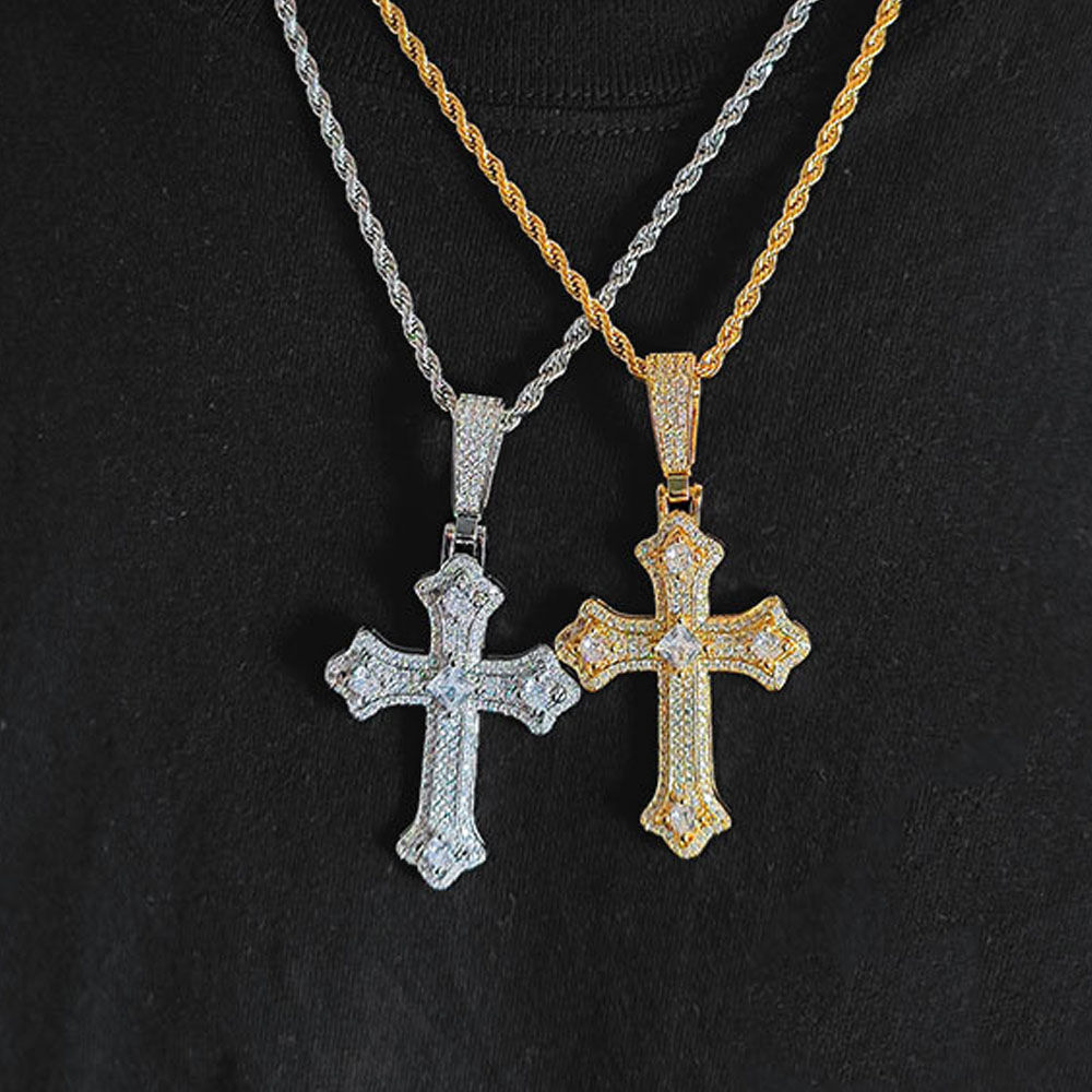 Luxurious Micro Pave CZ Gothic Cross Pendant – Iced Out Hip Hop Charm