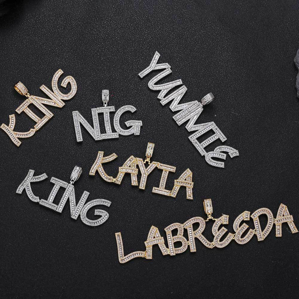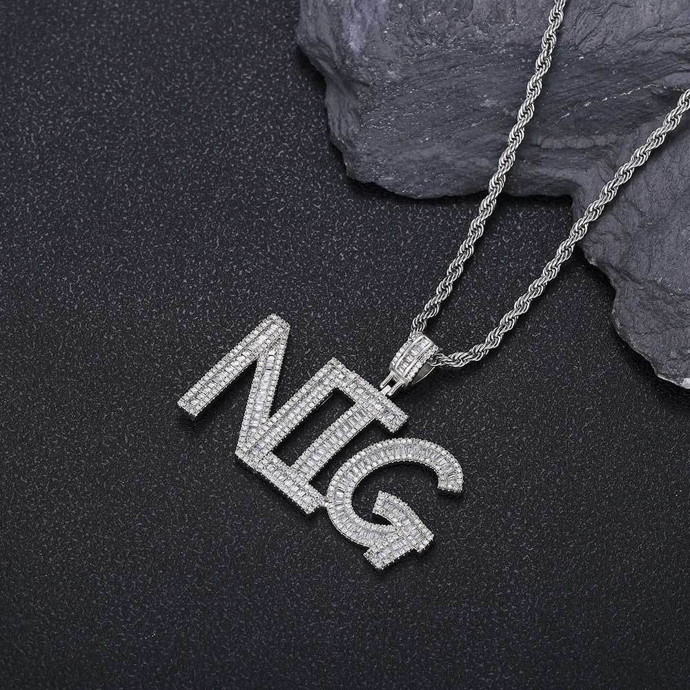 Custom Baguette Name Pendant – Iced Out 1-9 Letter Block Jewelry