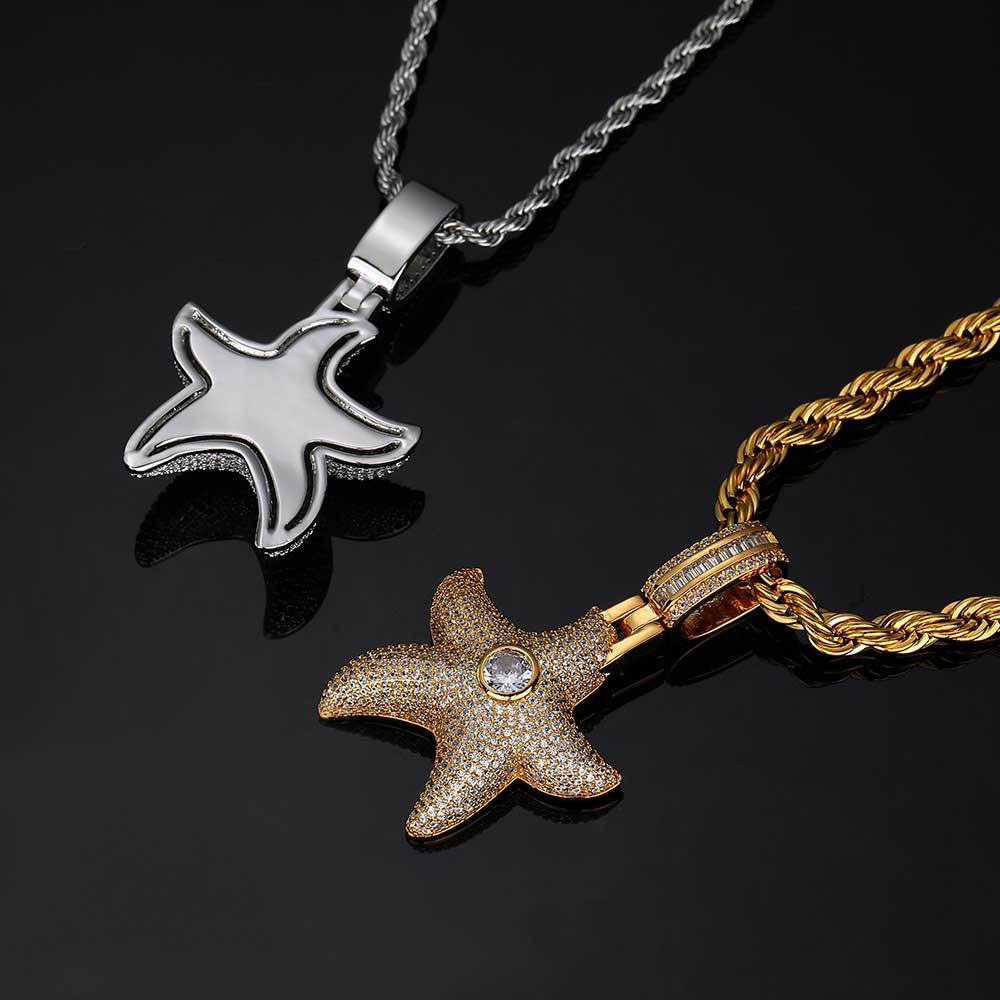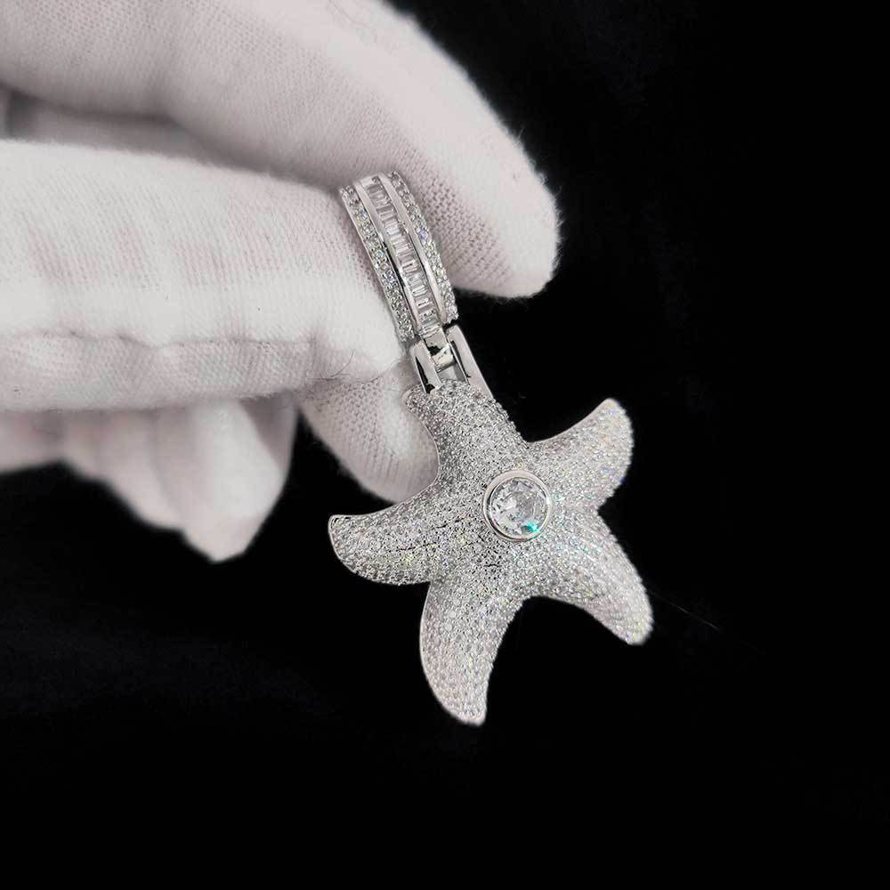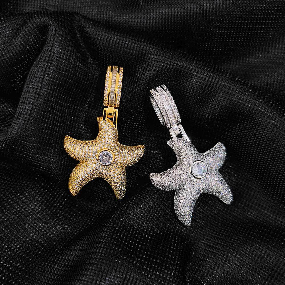 Premium Iced-Out Starfish Necklace – Luxury Nautical Starfish Medallion Streetwear Jewelry