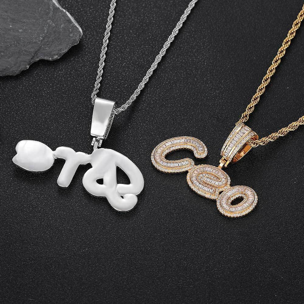 Custom Iced Out Script Pendant – Baguette Cut CZ & Copper Hip Hop Jewelry
