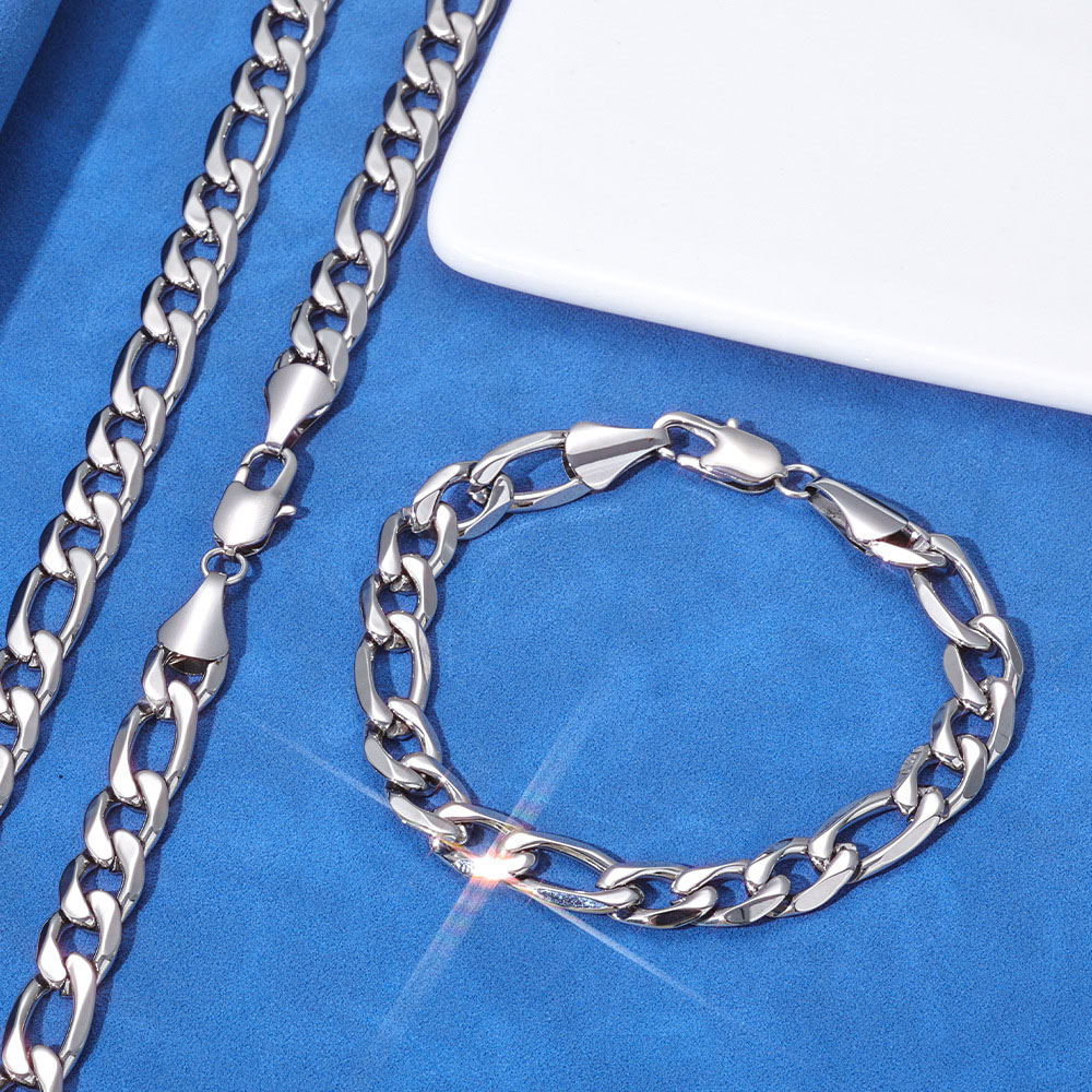- Iconic 3-1 Figaro Pattern: Features the classic rhythmic design of three small circular links followed by one elongated oval link for a sophisticated, textured appearance.