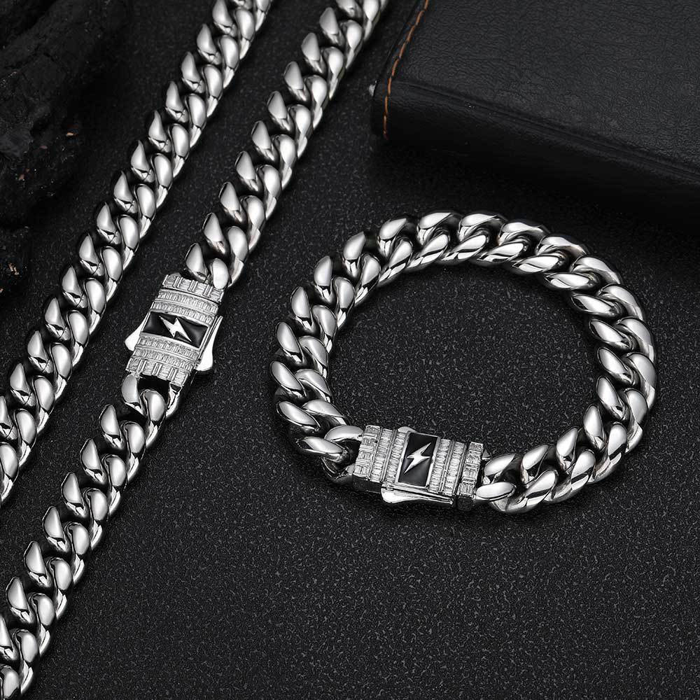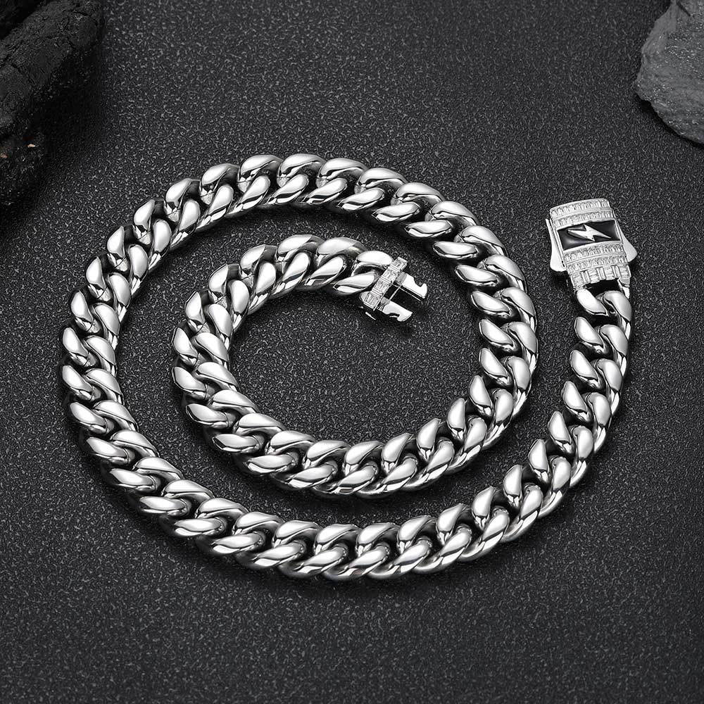 Stainless Steel Cuban Chain with Lighting Bolt Clasp