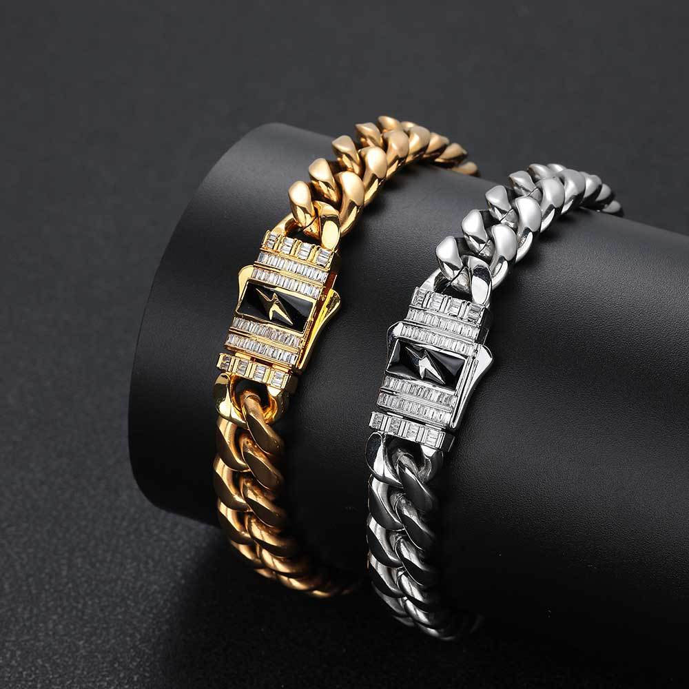 Lightning Bolt Clasp Stainless Steel Iced Out Cuban Chain