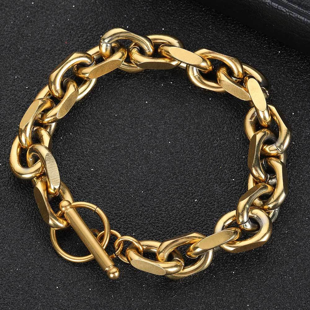 Rugged Luxury for Daily Wear: At 9mm wide, this set is built for durability without sacrificing its high-polish aesthetic. The integrated toggle clasp makes it easy to put on while providing a secure, industrial-chic closure. Whether you choose the deep luster of the gold plating or the crisp, clean look of polished silver, this flat-edge set is a tarnish-free essential for any modern collection.