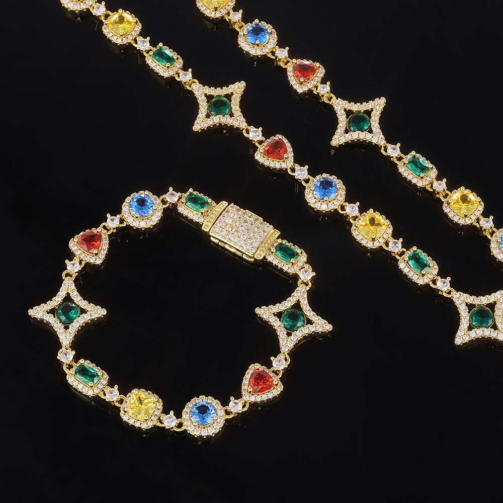 Vibrant Mixed-Cut CZ Necklace & Bracelet Streetwear