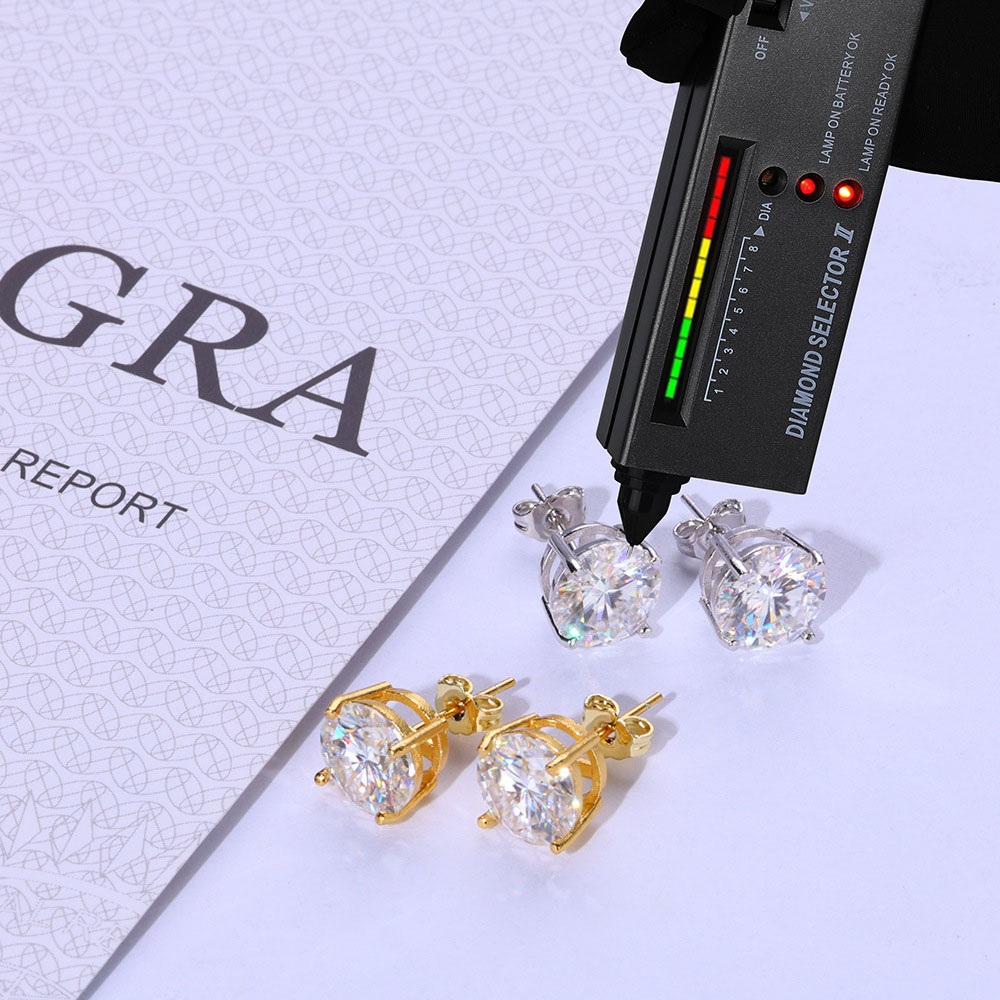 Upgrade your daily shine with our VVS Moissanite Stud Earrings. Crafted on solid 925 Sterling Silver with a classic 4-prong setting. These brilliant round-cut stones are GRA Certified and guaranteed to pass the diamond tester. Available in Gold and Silver finishes.